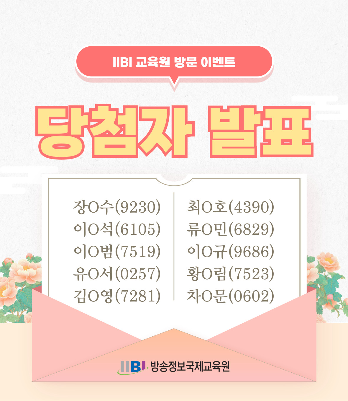 안녕하세요. 방송정보국제교육원입니다. 교육원을 방문해주시고 이벤트에 참여해주신