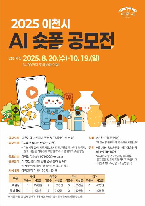 김O빈 교육생이 <2025 이천시 AI 숏폼 공모전> 우수상을 수상했습니다.