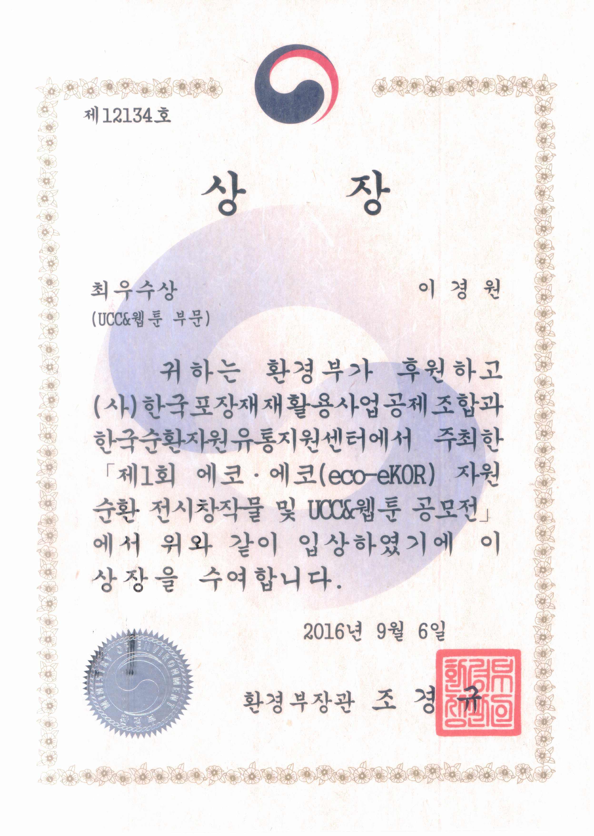 [공모전] 에코에코 자원순환 전시창작물 및 UCC&웹툰 공모전 최우수상(편집26 이경원)